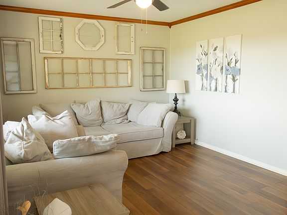 Gas fireplaceFour season sunroomSerene koi pondOverlooking the backyardLaminate flooringSplit floor plan