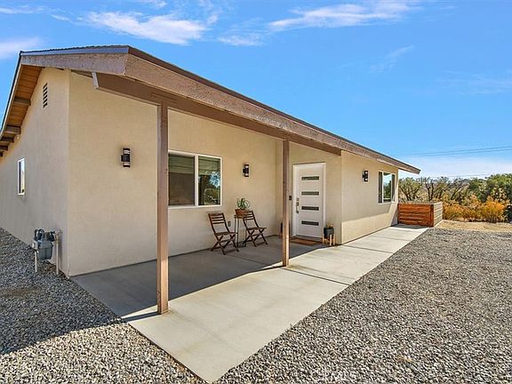 TRANQUILITY and AN ESCAPE FROM THE HUSTLE AND BUSTLE await you at this wonderfully inviting high desert retreat! Completely rehabbed from the studs out with EVERYTHING NEW in 2022/2023, this mid-century home and separate casita offer all the conveniences and comfort of modern living on 1.25 acres with endless views and a feeling of complete privacy! The main house offers 1072 sqft with 2 bedrooms and 1 bathroom. The detached 220 sqft casita offers a sleeping area and bathroom, making it a perfect setting for a home office, art studio, workshop or guest retreat. This home boasts open-concept living and numerous windows bathe the interior in natural light, bringing the outdoors in, and offering expansive mountain views from nearly every room! A large living room features vaulted ceilings, electric fireplace and Samsung “The Frame” TV, as well as a slider to a large covered patio, offering an incomparable space for outdoor entertaining and lounging. A beautifully appointed and efficient kitchen is outfitted with designer cabinets, walk-in pantry, quartz counters and stainless Kitchenaid appliances. Both bedrooms in the main home are well-proportioned and feature mirrored wardrobes and ceiling fans. The well-thought out bathroom offers dual vessel sinks along with a wall of stylish cabinets, an enormous frameless walk-in shower and conveniently located washer and dryer. The casita is similarly appointed. Neutral tile floors throughout, recessed and designer light fixtures, RV parking, low maintenance and water-wise landscape, and many other features make this property truly special. This slice of paradise is just minutes from local amenities and main attractions including Joshua Tree National Park, Pioneertown, Palm Springs International Airport and more! A desert oasis where sunsets and star gazing collide! A perfect retreat! This home is a MUST SEE in person cannot be truly appreciated from photos.