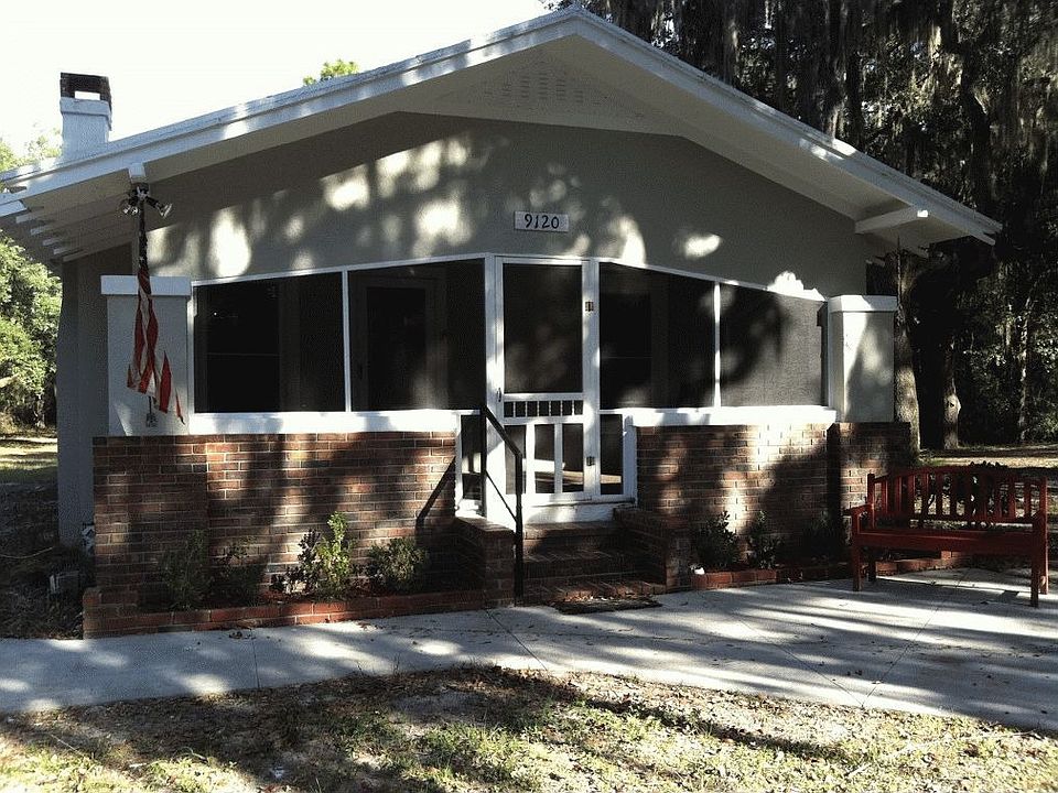 2/1 home on large private lot in North Lakeland. Front & rear porches, bonus room could be used as office, nursery, or large walk in closet. Crown molding, carpet in all rooms except kitchen & bath, washer/dryer hook-ups. Has covered parking & room for RV parking. Exceptional Value! Address is 9120 Hall Road not 9142.