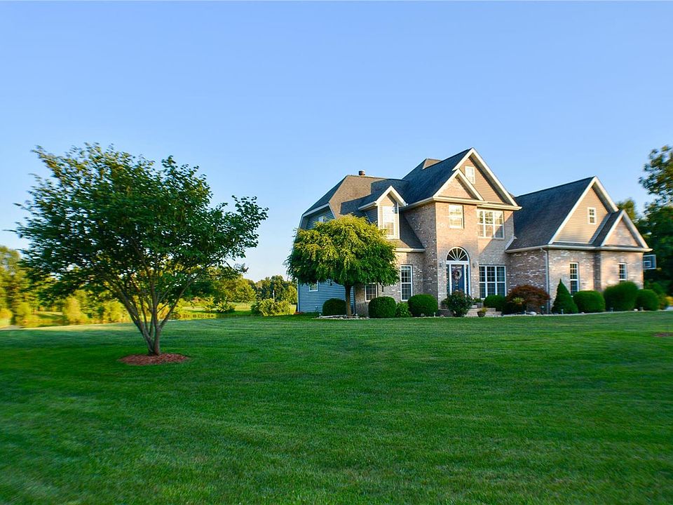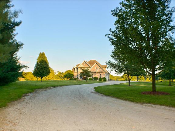 You will love the park like setting of this beautiful home on 2 acres of land, including Bocci Ball Court! Warm yourself by the fireplace and enjoy the gorgeous view from two story windows in the living room. The kitchen has plenty of cabinets and is open to the living room and dining room. There is a main floor master bedroom suite with separate shower and soaker tub as well as separate vanities. Upstairs you will find an open den and balcony area, plus three additional bedrooms and a full bathroom. The lower level is a walkout basement that is unfinished except for an additional bathroom; the rooms are already framed out to finish. 2 newer hot water heaters & water softener and filter. The attached garage is spacious. The GeoThermal heat uses the pond, seller will provide an agreement prepared by an attorney to allow Buyer access to pond for repair/maintenance. This is a separation of land from a larger parcel and seller will provide survey. No water ownership rights included.