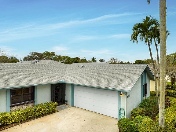Spacious end unit 3 bedroom 2 bathroom 2 car garage villa in desirable River Oaks of Boca Raton. Open concept floor plan with two large patios. Quietly situated on the peaceful Hillsboro interior canal. White kitchen cabinetry with newer stainless upgraded appliances. Neutral tile throughout, No carpet or popcorn ceilings here! Huge family and dining room with volume ceilings and plenty of natural lighting. Oversized primary bedroom with a large walk-in closet and dual bathroom sinks. Full size washer and dryer. Accordion shutters provide complete hurricane protection. Beautifully kept community pool and clubhouse. Roof maintenance is included in the low Hoa fee. Close to all of Boca's best shopping, dining, and major highways. Great location and school district.
