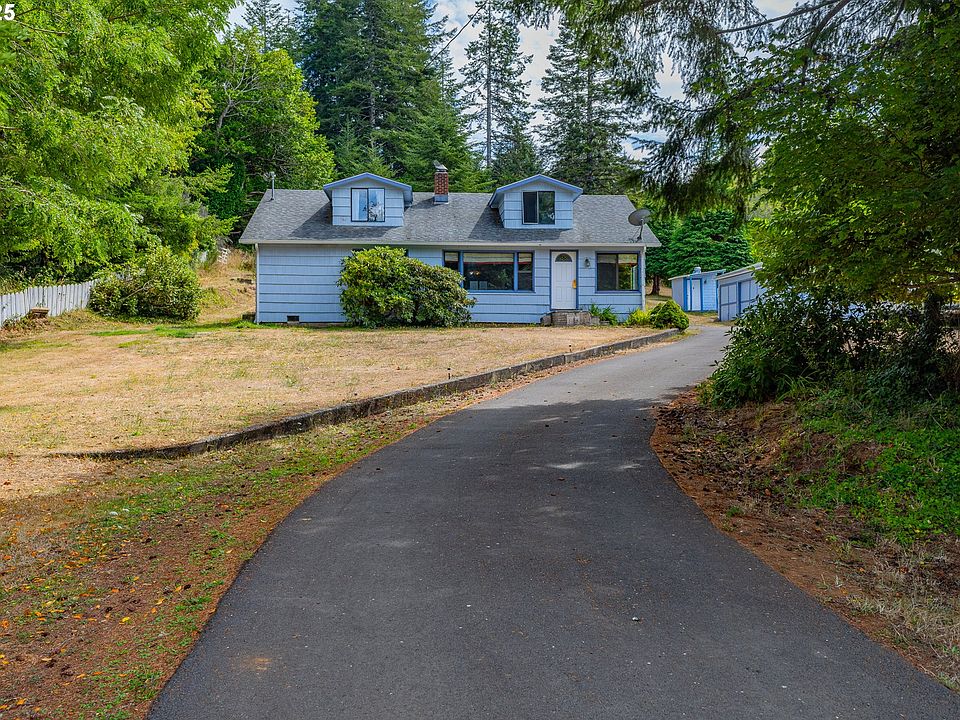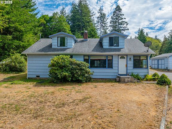 Holiday celebrations could be at your new house this year! Room to feed a crowd, or just enjoy Country Living minutes from Coquille/Coos Bay/Bandon/Ocean Beaches. Charming Farmhouse with 4 bedrooms and 2 bathrooms. Two dining room areas and a breakfast corner nook in the large country kitchen. Feels like coming HOME! One bedroom/or office area attached under the same roof but separated by back breezeway includes a bathroom, walk-in closet/storage room and laundry hookups. Two large bedrooms in the house on the main floor. Upstairs bedroom and an extra open areas creates breathing space, maybe a toy area/office/library. Large back deck area. All this on over an acre with tall timber, pasture area, fenced, garden with deer fencing, concrete parking area and 2 shops, one with garage doors. New roofing on house and shops in June 2021. Paved driveway! Sits pretty back off the road. Call for a showing today.