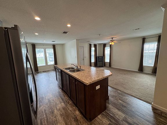 Massive center islandFront deckBeautiful en suite bathroomLarge windowsOpen floor planConvenient laundrySpacious carport area
