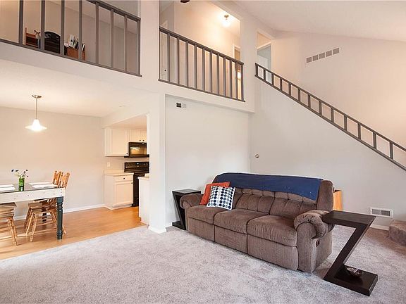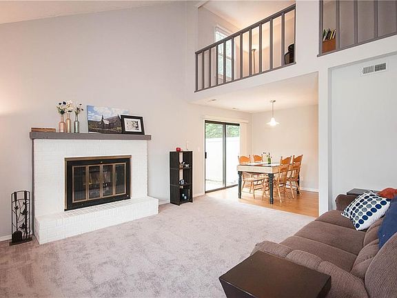 Ready for immediate move-in! Brand new paint and carpet everywhere! You wonât believe how big, bright & airy it feels when you walk in - the great rm has a full two-story vaulted ceiling open to the 2nd bedroom/offc. Plenty of room for your tv next to or over the painted brick fireplace. The kitchen has white cabinets, tile backsplash, all appliances included. Breakfast area opens to the patio. Master w/ a walk-in closet, bathroom w/ white vanity & new flooring. The second bdrm w/ closet is open to the great room below - could be converted to a closed bdrm or could make a great office. All windows replaced with low maintenance vinyl windows. Washer and dryer stay. Wonderful location with easy access to major roads, shopping and dining!