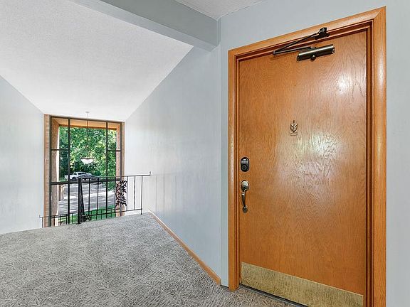 A must see! Charming move-in ready and yet affordable top floor condo in a wooded development. This FULLY remodeled unit features an open dining/living space with lots of light, 2 bedrooms, updated bathroom, nice size deck, a storage unit and an oversize single car garage. All new flooring, paint, trims, windows, siding door, appliances, cabinets, granite countertop, back splash, light fixtures and AC! Plenty of guest parking available! Beautiful outdoor pool to enjoy the summer! Close to shopping, grocery stores, General Mills nature trails, Brook View Park, golf course and 3 major highways. Cats are allowed, only service dogs are allowed.