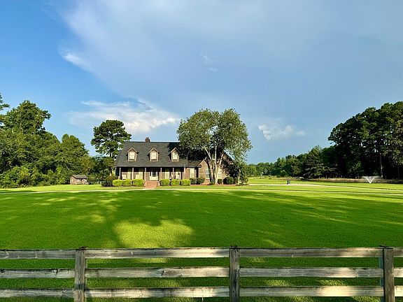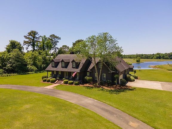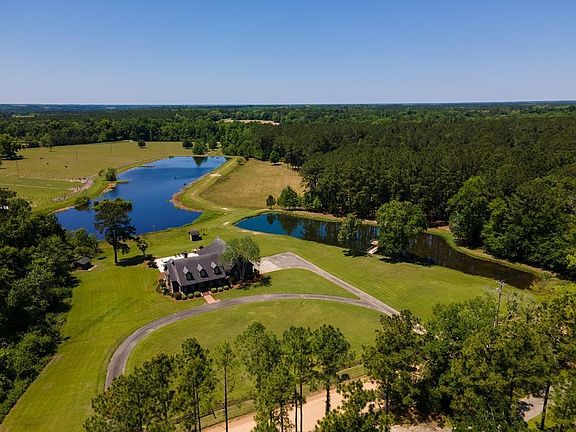 Discover this one-of-a-kind, custom-built 5-bedroom, 3.5-bathroom home nestled on 13.3 acres in Hahira. This property features a pool and two meticulously stocked and managed ponds, creating a serene and picturesque setting. The home boasts modern conveniences, including a built-in generator, a new roof installed in 2024, and a recently upgraded water softener and filtration system. Inside, you'll find built-in speakers throughout, a grand circle drive, and a charming playhouse that doubles as storage. The spacious interior is highlighted by tall ceilings, heart pine floors, and a stunning wood-burning brick fireplace. The new plantation shutters and fresh interior paint enhance the timeless appeal of the open floor plan, which seamlessly connects the kitchen and living room with a central island. The home also features a separate formal dining room, split bedroom layout, and a large office/flex room adjoining the primary suite. The primary bedroom offers private access to the covered porch, ample closet space, a double vanity, and a newly installed frameless glass shower enclosure. Upstairs, the guest suite provides additional privacy and comfort. The home is equipped with a total HVAC system that has been recently updated, with individual units for the primary suite, guest suite, and the rest of the home, ensuring optimal climate control. Outdoor living is at its finest here, with a back porch perfect for entertaining, a sparkling pool, and breathtaking views of the pond at sunset. Despite its secluded feel, the property is easily accessible with only 0.33 miles of dirt road.