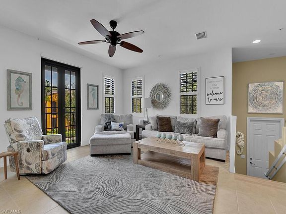 Enjoy this spacious Santa Clarita model, end-unit with 3 bedroom, 2 1/2 bathroom, 1,989 sqft condo in beautiful Olè at Lely Resort. The top floor features a large living room, beautiful kitchen with stainless steel appliances, built-in reverse water osmosis system, big master bedroom, double sinks, shower and bathtub in bathroom with walk in closet, nook, screened in porch, laundry and half bath. Downstairs offers 2 bedrooms, bathroom, built-in office desk, lots of storage, attached two car garage. Lots of natural light on an end unit.  Every window has plantation shutters. Olè offers world-class, resort-style amenities that include, beautiful pool, fitness center, pickleball, tennis, bocce ball, basketball, volleyball, restaurant, movie theater and more. Located just a short drive to Marco Island and Naples beaches, restaurants and shopping.