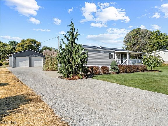 Meticulously maintained Malvern, OH home offers simple, single-level living with ample outdoor space. Features a stylish kitchen, living room, full bathroom with laminate floors, and a carpeted bedroom with spacious closet. Enjoy a covered front porch for sunrises, a large back deck with a fenced 25' above-ground pool, a recently built two-car garage with electric and heat, a lean-to for summer BBQs, and a shed for storage. Perfect for easy, comfortable living.