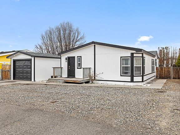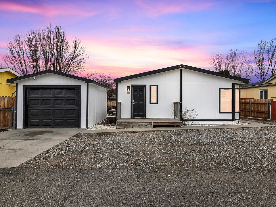 MLS 274160 - This well maintained 1996 manufactured home boasts a 3-year-old roof, ensuring worry-free living for years to come. The home is further enhanced by double-pane vinyl windows, providing energy efficiency and a quiet interior. Step inside to discover a beautifully remodeled warm and inviting interior, with the kitchen and bathrooms updated just 4 years ago. The kitchen features modern appliances, stylish white shaker cabinetry, tile backsplash, large island, a coffee corner, and ample counter space, making meal preparation, while visiting, a delight. Home offers privacy with primary and additional bedrooms and bathrooms on opposite end of home. Open kitchen/living/dining areas makes home feel spacious and comfortable. Outside, the fully fenced backyard provides a safe and private space for outdoor activities. The spacious concrete patio is perfect for outdoor living, entertaining guests or enjoying a peaceful evening relaxing. Parking is a breeze with a 1-car garage and plenty of extra parking space. With its desirable features, prime location, and price, this home is definitely worth seeing.