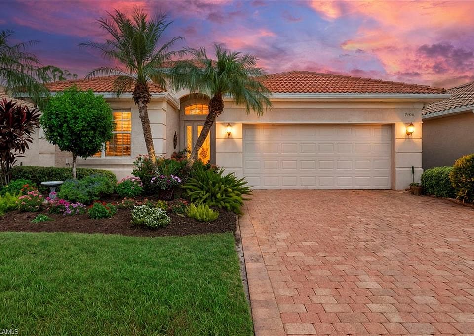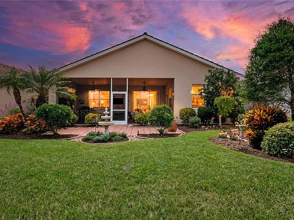 Situated in the desirable Reserve at Estero, this 3-bedroom plus den, 2-bath Dolce Model offers a perfect blend of comfort and style. Surrounded by beautifully manicured landscaping, the residence makes a lasting first impression. At the heart of the home, the large open kitchen features granite countertops, a breakfast bar, and a spacious pantry—ideal for both everyday living and entertaining. Tile flooring flows through the main living areas, creating a light and airy feel, while hardwood floors add warmth and character to the bedrooms and den. The versatile den provides the perfect space for a home office, library, or media room. Highlights include volume ceilings in the great room, an oversized dining area off the kitchen, and an extended 2-car garage for added storage or workspace. Step outside to a private lanai framed by lush greenery—a tranquil retreat for morning coffee or evening gatherings. The Reserve at Estero is a gated, natural gas community offering resort-style amenities including a clubhouse, fitness center, pool and spa, tennis, and pickleball—all just minutes from shopping, dining, and Southwest Florida’s beaches.