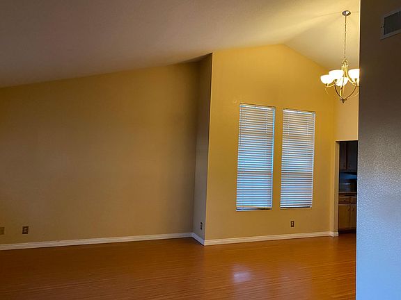 Cute one story pool home on a desirable street in the Orangecrest area available November 1st. This 3 bed 2 bath has granite counters, stainless steel appliances, and wood laminate flooring throughout with tile in the entry and baths. There is a convenient bar area with granite counters and sink off the entry. The front door has a double door entry with a privacy screen. The living room and dining room have vaulted ceilings, chandelier and extra large windows. There is a gas fireplace, vaulted ceilings with recessed lighting and a fan in the family room. French doors in the family room and master bedroom both lead out to the pool and spa. Convenient laundry closet with washer/dryer hookups between first and second bedrooms. The master bedroom features vaulted ceilings, a fan and 2 closets (one is a walk-in). Both baths feature glass bowl sinks. The Private back yard has block walls, a large grass area, an entertaining patio and a kidney shaped pool with a spa. There is a separate side driveway that leads to gated RV parking for extra parking or storage. The home has a 2 car garage with house and back door entry. It is walking distance to award winning schools, parks, and shopping.