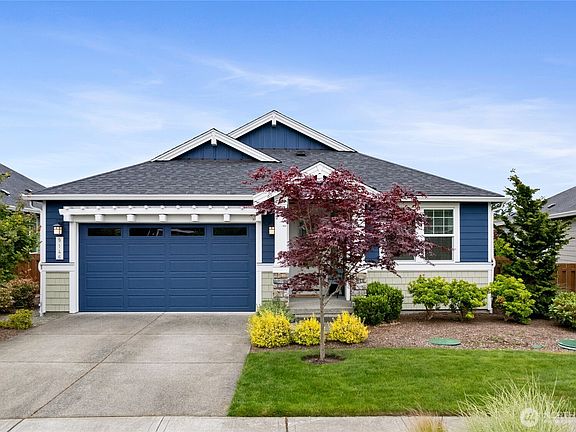 Beautiful 55+ community includes 2 clubhouses, pool, pickleball/ bocce court, fitness center, dog park, and more. Quality construction bright and airy 3 bed 2 bath, high ceilings, quartz countertop, pull out drawer cabinets, ensuite bath off primary with large walk in closet, engineered hardwood through out. Open concept living, great for entertaining or for the food enthusiast cook. No homes built directly behind giving more privacy. 75K in upgrades. This is the one!
