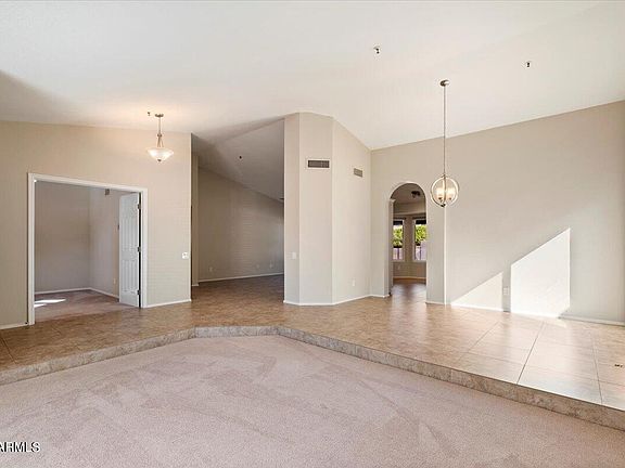 Come see the great floor plan of this ranch-style home with updates in all the right places! On entry, you'll be greeted by soaring ceilings, an open floor plan, and an abundance of natural light. The living rm transitions into the formal dining area, offering an elegant entertaining space. The adjacent family rm is connected to the kitchen featuring SS appliances, granite counters, and a bay window casual dining area. Retreat to the primary bedrm, where you'll find an ensuite with double sinks, walk-in shower, a private toilet rm, and closet. Two additional bedrms, a home office and a 3-car garage, cater to a variety of lifestyle needs. Enjoy the large, covered patio overlooking a lush grass area, fenced-in pool, and low-maintenance desert landscaping, creating the perfect outdoor oasis.