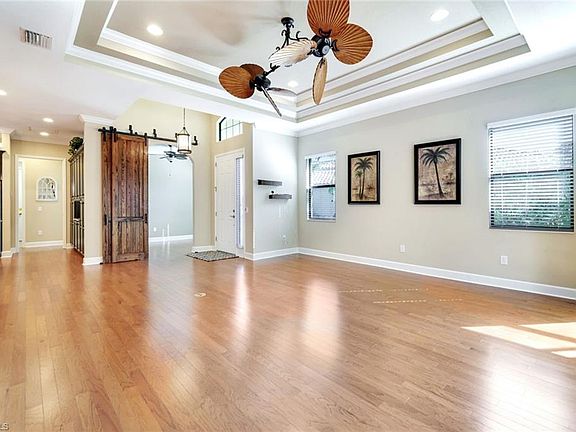 Nestled in the sought-after gated community of Bonita Isles, this rarely available partially furnished two bedroom PLUS DEN, two bath villa offers an exceptional blend of luxury, BEAUTY and privacy. This home is unique in all ways - from the outstanding location (just six miles from the beach and within walking distance to several restaurants and a multiplex movie theater), to the gorgeous high-end finishes such as wood flooring, coffered ceilings, crown molding, a custom barn door, NEW AC, new lanai shades and highly rated impact-resistant windows/doors! This home is spacious yet warm; it will be your dream vacation villa or year round residence. With so much light pouring in from the impact windows, you will never forget you are in the sunshine state! The wide open and functional floor plan lends itself to entertaining friends and family with a large patio/lanai, just off the living area. The chef’s kitchen boasts granite countertops and gorgeous wood cabinetry, while the spacious primary suite impresses with a custom walk-in closet, dual sinks, and a glass-enclosed walk-in shower. The guest bedroom and bathroom are privately tucked away from the main living area. There is so much PRIVATE green space as this pie shaped lot is one of the largest in the community! Additional upgrades include an epoxy-coated garage floor with extra storage cabinets and southern exposure for maximum light throughout the day. Bonita Isles offers resort-style amenities including a heated pool, tennis courts, fitness center, and clubhouse activities, all with low HOA fees and no CDD. Located in the heart of Bonita Springs, just minutes from world-class shopping, dining, and the stunning Gulf beaches—this is Florida living at its finest! WALK to the burgeoning downtown Bonita Springs where Schedule your private showing today!