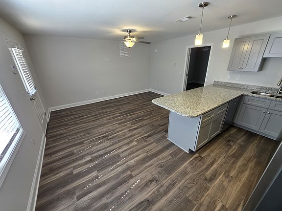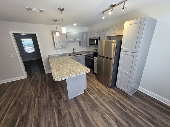 Completely remodeled interior, 1 bedroom 1bath. Stainless steel appliances to include refrigerator, automatic ice maker, stove with microwave above, dish washer and garbage disposal. Granite countertops. Pendant lights over bar. LVT flooring throughout NO carpet. Intrusion alarm. Ceiling fan in bedroom and living room. Custom bath mirror. Rear patio. Tall kitchen sink faucet. Track lighting. Washer / dryer connections. Paved parking. Bottom floor unit.18 month lease is required. Good credit is a must.