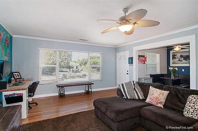 Turn-key Escondido single-story home. This charming home has beautiful hardwood floors in all areas except bathrooms and kitchen. Large living /family room is great for entertaining. All bedrooms are good sized with ceiling fans. Second bathroom has a walk-in shower. Easy to maintain yard with wonderful rose bushes, raised-bed vegetable garden, covered porches in the front and rear with a large patio. Home has central heating and air-conditioning. All appliances are included with this sale.