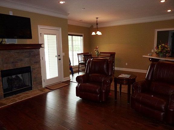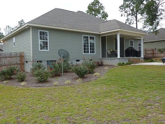 This energy efficient Craftsman-style home features stone accents, decorator colors, and more! From the time you enter the foyer, you'll appreciate the attention to detail with 9 foot ceilings, crown molding, and wood floors. The stone fireplace has gas logs. For those who love movies and music, you'll enjoy the surround sound stereo system with speakers on the back porch and the garage! The kitchen has neutral tile floors and stained wood cabinets. Black appliances are a nice addition. The master features a magnificent tray ceiling. All windows have custom wood blinds. Neutral carpet color in all the bedrooms. The backyard is enclosed in a wooden privacy fence. The covered patio and additional concrete seating area is a great spot for entertaining. Outdoor lighting around the house. Low maintenance exterior and landscaping. There is an ALARM which is constantly on call Listing Agent for code