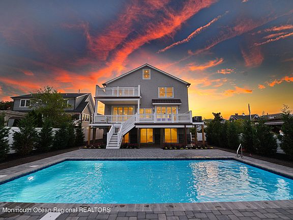 Here's a remarkable chance to own this extraordinary new custom home in the prestigious Mantoloking community at the ''Jersey Shore''. This luxurious 5,000 sq. ft. residence boasts an open floor plan and is situated on a spacious double lot (60x201) just one block from the ocean. The 4 stop elevator will provide convenient access to all 4 levels, including the 5-6 bedrooms and 5 1/2 baths. You may choose from 2 different master suites, both of which feature a free-standing 6' soaking tub and steam shower. The living room comes equipped with a fireplace and granite surround This home is perfect for families and those who love to entertain. From the Victorian and Copper roofs (with a lifespan of over 40 years), every detail has been meticulously crafted. While the 700 sq. ft. lanai and 1,100 sq. ft. of decks and porches provide ample space to enjoy the outdoors. The kitchen is a chef's dream with quartzite level 1 counters and backsplash, JennAir appliance package with such features as a commercial grade stove/ double oven includes dual fuel (electric & Gas), two additional wall ovens, microwave, double door 48' refrigerator and a wet bar with ice maker and wine cooler for added entertainment convenience. Cabinets are inset style for create a flush panel for a high-end look. Fabulous custom oak engineered flooring. White cedar siding with a factory applied double coated stain, and there's a stone foundation and copper gutters. The home also features a 16' x 32' Gunite heated pool with colored LED lighting and cartridge filter 1hp whisper flo pump 250k, gas heater Polaris 380 cleaner IntelliChlor salt system. 3,000 sq. ft. of brick pavers add charm to the outdoor space. Additionally, there are 5 HVAC systems, a Generac 24 KW generator, and much more. Make this your summer dream home!