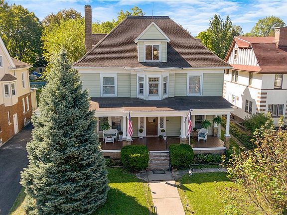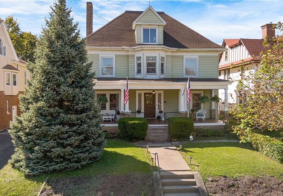 The dramatic pillars and wraparound porch set the tone before you even step inside. A large, open foyer welcomes you with original plasterwork and a curved staircase, complemented by a second back staircase for convenience. Every room has been lovingly restored, showcasing both scale and beauty.