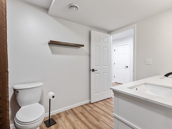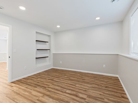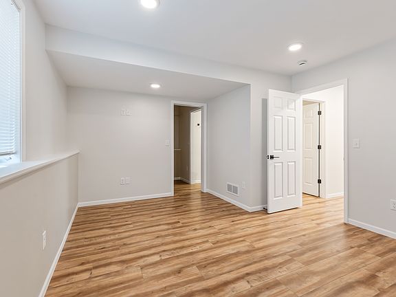 This home's 4-bedroom layout includes a primary suite with large bedroom, walk-in closet, and bathroom with dual-sink vanity. The additional lower level bedroom can easily act as an office and has two network jacks for connectivity to be used as such. The other two bedrooms are at the end of the hall on the main level, next to the other bathroom. The home has an attached garage that provides access to a large back yard with no neighbors on the backside due to a neighboring development.