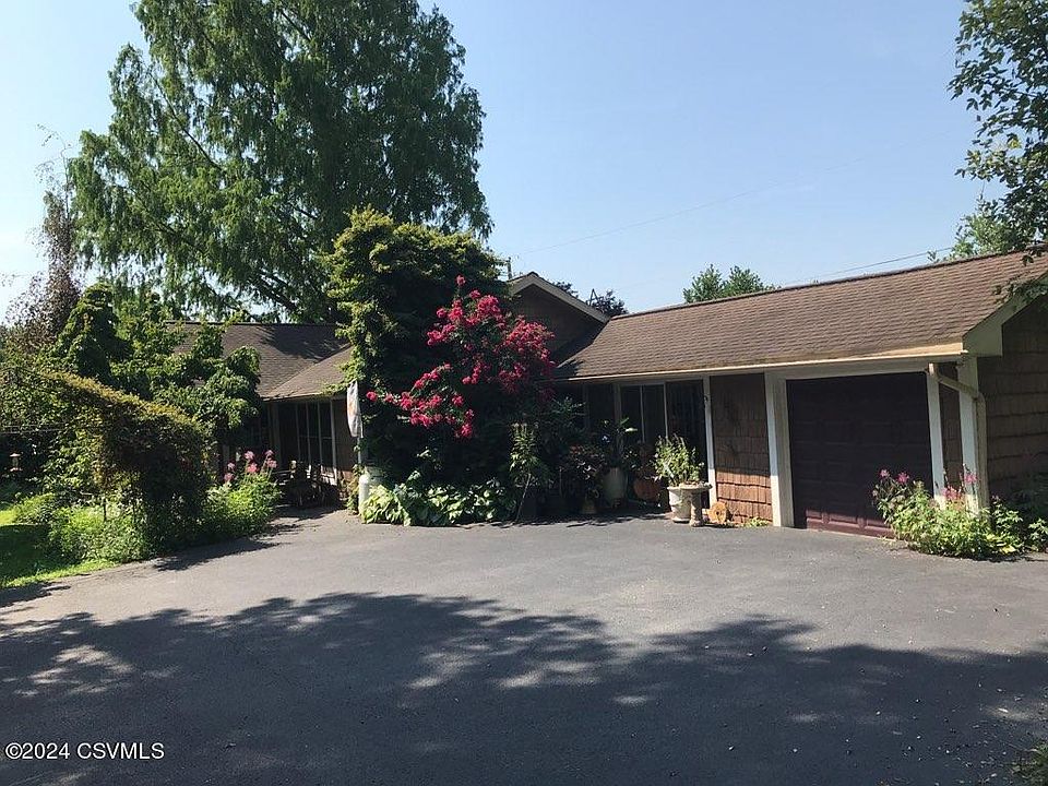 Seller states It's time for a warmer climate! ''Gardener's paradise'' Enjoy blooms beginning in early spring through late fall. If gardening is your passion, you will not want to miss this three-bedroom ranch. Modern kitchen with a peninsula, tile and wood flooring, brick fireplace, roll-in shower with tile flooring. Enjoy the views of the wildlife from your 10' x 20' sun porch, an 8' x 10' breezeway between the home and garage, oil hot water heat with central A/C, and split rail fence. Please note the storage shed is currently on the neighboring property and must be relocated after the purchase. Exclusions include: lead glass window panels in dining room windows, washer, dryer, dining room light, Tiffany bar light, and bedroom window treatments. Call Scott 570-412-6121