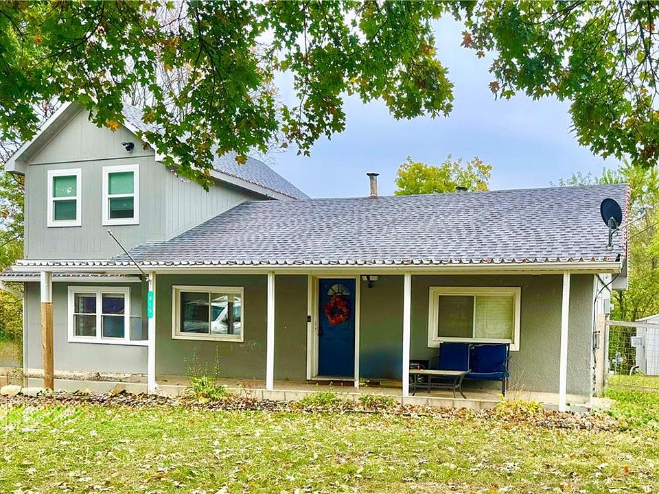Recently Renovated Home on Expansive Lot in Fort Osage School District! Enjoy the feel of country living with the convenience of nearby amenities. This updated home sits on a large lot that backs to woods for added privacy. Interior features include neutral décor and Luxury Vinyl Plank flooring throughout. Open floor plan with spacious dining area and main floor living space. Kitchen offers abundant white cabinetry, pantry, and stainless steel appliances. Two bedrooms and two full baths located on the main level. Upper-level bedroom includes a walk-in closet and could serve as a primary suite. Relax on the large covered front porch or entertain outdoors on the patio featuring a built-in stone gas fire pit and gas line for grill or outdoor kitchen.