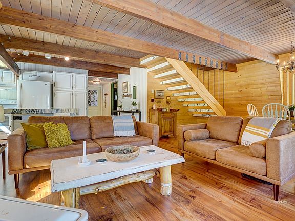 What a gem! This cabin cabin has everything you need to escape to the mountains. The main floor has an open floor plan with a bedroom and a bathroom as well. Upstairs you will find another bedroom, bathroom, versatile loft area as well as an office nook. The upstairs bedroom has it's own deck, perfect for morning coffee and enjoying the star scape at night. There is a partial basement with laundry facilities and a workshop area. A detached shed has pull through ability with garage doors on each end for convenient snowmobile and atv storage and access. The wood-burning stove warms the cabin as well as the ambience. There are baseboard heaters in each room so everyone can be comfortable. The outdoor fire pit are is waiting for memories to be created and stories to be told! Room for outdoor games and outdoor dining make this lot ideal for families and entertaining guest. This is a must see!