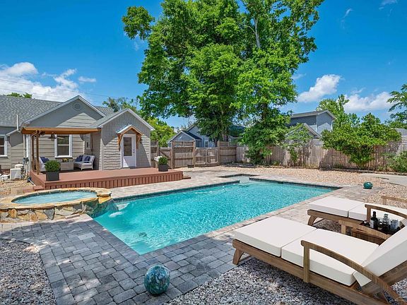 Opportunity for that rare East Hill POOL home! Located in the highly desirable Southeast corner of East Hill provides you access to all the great amenities of both the East Hill community and Downtown living. A++ location! This house sits stately on a coveted oversized lot, providing opportunities to expand or even possibly add an additional dwelling! Stepping across the threshold, you enter the great room. Your eyes will quickly notice the beautiful original hardwood floors, kept in immaculate condition. Hinting at the high end nature of the construction are the rare tall ceilings, giving that sought after feeling of openness. Blending the traditional style nicely with modern living is the sophisticated kitchen. Boasting contemporary cabinetry, complete with under the cabinet lighting. These lights highlight not only the elegant backsplash but also the upscale granite countertops. This home features two large bedrooms, both showcasing those desirable tall ceilings, and sharing a completely renovated fully tiled master bath, purposely designed for modern living. The spacious master bedroom shows off large windows allowing for ample natural light to illuminate the expansive space, giving off a relaxing feeling. This room is also outfitted with a full walk-in-closet. This home has a whole house backup generator. Upon stepping out the backdoor, you will find yourself standing on your sizable open-air deck overlooking an amazing custom crystal clear Gunite pool, featuring a raised waterfall hot tub, wading area, and spraying fountains. Beautifully landscaped, this is the perfect space for both large and cozy gatherings. The oversize yard is a true luxury, granting room for not only the expansive pool, but also the paver patio, the open aired deck, and a shaded covered deck. This home is just minutes away from delicious dining, Palafox Market, boutique shopping, parks, beaches, and all the fun events downtown. You don't want to miss out on this home, it could be the one!