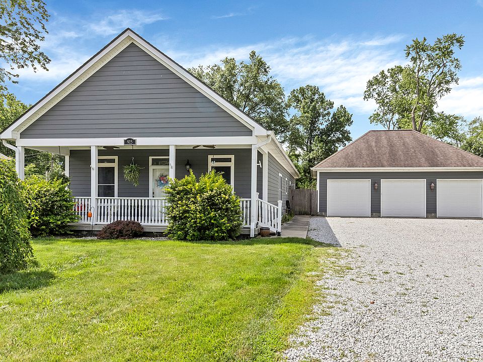 Beautiful custom 3 bed/2 bath built in 2009 in Perry Township with large, heated and cooled 3-car detached garage that sits on half an acre surrounded by 6-foot privacy fence. Kitchen boasts stainless steel appliances, endless cabinet and countertop space with center island, and hanging pot holder. Spacious primary bedroom with tray ceiling includes walk-in closet that gives way to master bath with double bowl vanity and oversized bathtub & shower. Large Great Room with cathedral ceiling includes built-in bookshelves and tons of lighting. Separate dining room connects lovely kitchen to cozy Great Room. Heated and cooled garage, professionally insulated with spray foam throughout, includes 4 9-foot garage doors powered by automatic garage door openers and plenty of attic space for storage. Large lot is also home to outdoor living space with two pergolas, firepit, mini-barn, and playset. Split unit in garage new in 2024. Garage spray foam in 2022. New fence in 2019. Sump pump in 2021. New utility sink in 2024. Pergolas in 2020. This is a hidden gem that's convenient to all!