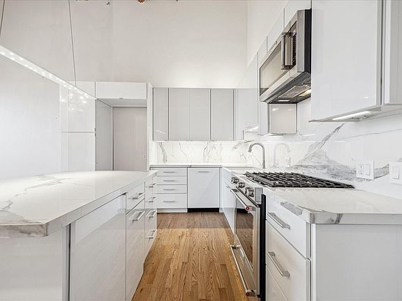 Rooftop terrace with poolVolcanic limestone soaking tubExposed brickPorcelain countersDesigner kitchenGas rangeSweeping city views