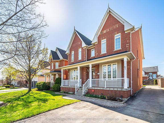 Executive 4+2 bedroom Victorian-style home in Meadowvale Villages prestigious Gooderham Estates by Monarch. Recent Improvements In August 2025 Include, Freshly Painted, Beautifully Appointed Main Floor Porcelain Tiles In The Foyer, Hallway, Kitchen and Breakfast Area, Rear Foyer and Laundry Room, Basement Apartment Building Permit Applied For Legal Basement Architect Drawings Available Upon Request, Freshly Sealed Driveway 2025. This Stunning House Comes With 9ft ceilings on main/second floors, Jatoba hardwood, crown moulding, pot lights Led Light Bulbs Throughout, closet organizers, and security cameras. Sun-filled living room, family room with gas fireplace, and gourmet kitchen with granite counters, centre island, built-in Jenn-Air/Panasonic appliances, and spacious breakfast area. Main floor laundry with covered access to double garage. Flexible layout includes option for in-law suite with 4pc bath and walk-in closet.Upper level offers 4 large bedrooms including a primary retreat with 5pc ensuite and a 3rd bedroom with its own ensuite. Finished basement includes open rec room, galley kitchen, 5th bedroom with 3pc semi-ensuite, and potential separate entrance ( Approved Building Permit For Basement Apartment ). Landscaped lot with extra-long driveway, walking distance to Rotherglen Montessori, Meadowvale Elementary, and David Leeder Middle.