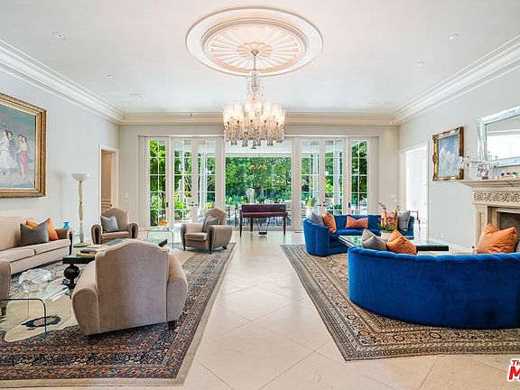 Introducing 915 Hartford Way, a timeless French Regency estate nestled behind private gates in prime Beverly Hills, just moments from the iconic Beverly Hills Hotel. This architectural gem blends elegance, sophistication, and serenity across beautifully landscaped grounds. Step through grand double doors into a dramatic two-story foyer. The formal living room showcases a stately fireplace and walls of glass framing lush surroundings. An open floor plan connects refined living spaces, including a formal dining room with soaring ceilings and tranquil views, and a charming breakfast room with direct outdoor access. The gourmet kitchen is a chef's dream, featuring a central island, top-tier appliances, and seamless design. A cozy family room/den boasts rich wood floors, custom built-ins, a fireplace, and an adjoining office. The luxurious primary suite offers a peaceful retreat with fireplace, dual walk-in closets, and a spa-like bath with soaking tub and walk-in shower. Two additional guest suites on the main level feature custom finishes and garden views. Upstairs, find a spacious guest room with its own bath and an expansive bonus room ideal for entertainment or play. Outdoors, enjoy a resort-style oasis with lush gardens, a covered terrace, pool, fire pit, bar, and multiple dining areas and lounge spaces. Additional amenities include maid's quarters, a wine cellar, and a 3-car garage. A rare offering of privacy, luxury, and proximity to world-class shopping, dining, and entertainment. Shown to prequalified buyers only. (Virtual renderings to illustrate the home's potential.)