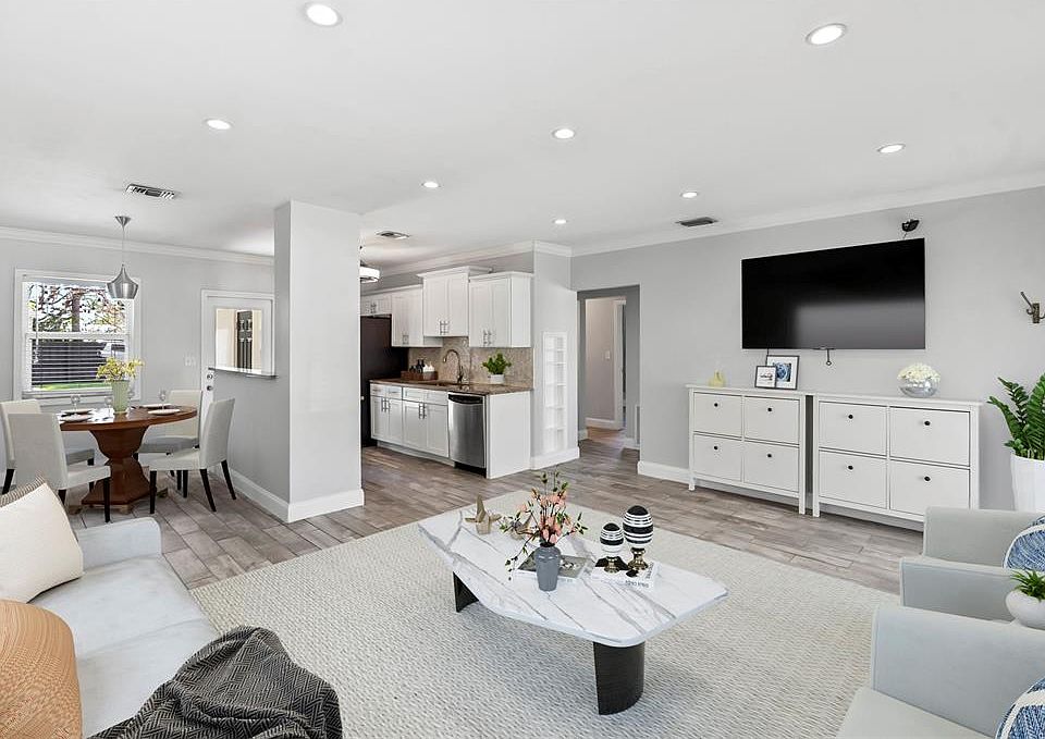 Come see this beautiful 3-bedroom, 2-bath home in one of Hollywood's most desirable neighborhoods. The modern touches in this bright and spacious open floor plan will not disappoint. The large master bedroom features walk-in closets. Enjoy the beautiful tile flooring throughout, leading to a large, fenced-in backyard with the perfect balance of tile patio and lush green grass. Landscaping included in the rent.
