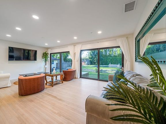 Welcome to your Homestead Garden Oasis, a tranquil retreat in Homestead, Florida. This fully renovated home offers a serene escape with a limestone pool, firepit, and BBQ area, perfect for enjoying nature's charm. The property features a master bedroom with a queen bed and ensuite bathroom, a second bedroom with two twin beds, a third bedroom with a queen bed and work desk, and a fourth bedroom/pool house with a queen bed and coral stone outdoor shower. The spacious living room includes a smart TV and a sofa bed, while the kitchen is a chef's dream with all necessary appliances and a wine fridge.