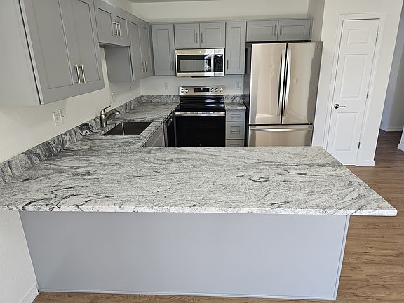 STUNNING, Just Finished Remodel of a 2 Bedroom, 1 Bath Cedaredge Duplex (Cedaredge, Delta County) (81413) Newly painted duplex in small town of Cedaredge, Delta County, 1067 Square foot, First Floor, 2-bedroom 1-bath. Be the first one to cook in this remodeled kitchen. Contemporary kitchen has new trendy, gray shaker cabinets accompanied by gorgeous white 'leather' surface granite countertops with spacious peninsula and room for dining table. Updated bathroom, hard floors (modern vinyl plank flooring) with hot water heating system throughout make for cleaner air, all windows have new blinds, laundry machines in unit. Sliding door to private, south-facing balcony, laundry machines in unit, master bedroom has a walk-in closet One car garage with remote, private driveway with space for 2 cars side-by-side. Quiet street, walk to the heart of town, to park and tennis courts, Cedaredge has an arts center with numerous music and various other art events On Western Slope halfway between Montrose and Grand Junction. Cedaredge has restaurants and a sizable grocery store in town and is only 20 minutes from the Delta Walmart, City Market, Safeway, other restaurants, hospital, etc. No Smoking, dog or cat negotiable, 1-Year Lease. Rent $1,730/month, deposit $3,000, to total $4,730 certified funds on move-in, includes water, sewer, tenant pays electric, gas, and trash Call Frank or Mary (360) 929-five-1-five-five. If you email, please include your phone number in your inquiry. You will be contacted by a phone call within 48 hours. 1 Year Lease, No Smoking, Owner pays water and sewer, Tenant pays electric, gas, and trash.