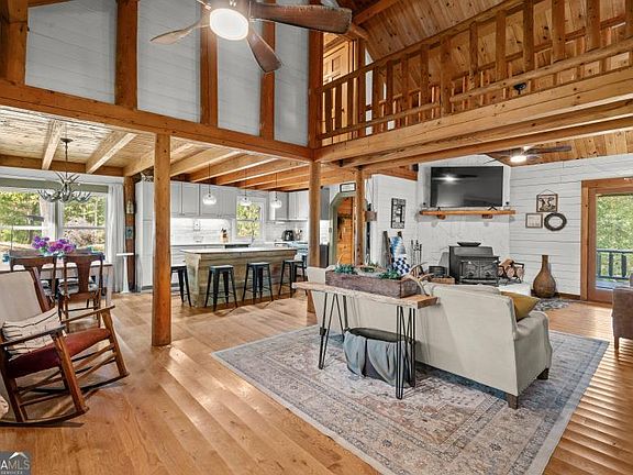 Welcome to this charming bungalow-style log home set on 6.64 acres in Heard County. This property offers fenced pasture, a private pond, and a brand-new 45x50 barn with concrete floors, four horse stalls, and dual lean-tos perfect for livestock, equipment, or hobbies. The home features 3 bedrooms and 3 full bathrooms, with recent updates throughout. The brand-new kitchen, all new windows, and remodeled finishes combine modern comfort with the character of a log cabin. Inside, you'll love the open floorplan with vaulted ceilings, exposed beams, and a cozy living area anchored by a wood-burning stove. The master suite includes an additional room that works perfectly as an office, sitting room, or nursery. Enjoy peaceful country living while still being conveniently located just off Hwy 27, making it an easy drive to Carrollton, Newnan, or LaGrange.