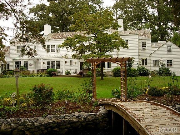 Designed by renowned Chicago architect Chester Patterson. This magnificent mansion on the hill is surrounded by the waters of the Pasquotank River. Built in the European Manor House tradition, all rooms have water views. Four large, comfortable bedrooms, each with its own bath & gas fireplace. Staircase & English lift elevator, wood-paneled library with gas fireplace and elegant drawing room. Crown molding & wood floors throughout. Slate-floored sunroom provides a spectacular panorama of a garden island and blue waters beyond. Three bay garage. Large kitchen/butlers pantry.