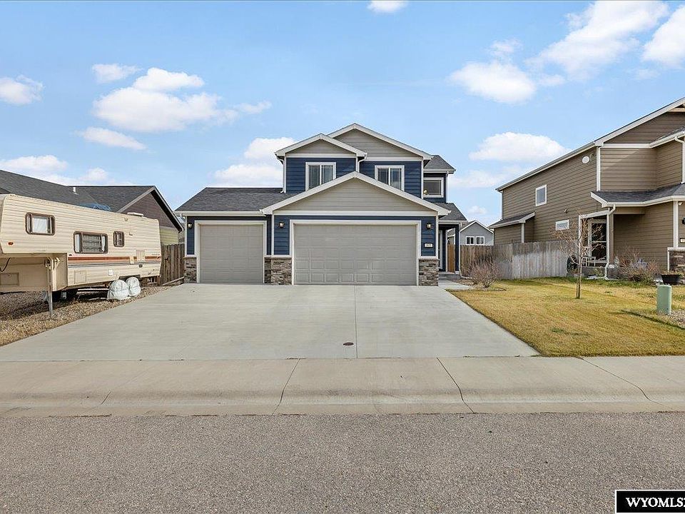 This beautifully maintained two story floor plan offers the same quality and design as today’s new builds - only better, because it’s already complete and move-in ready! You’ll love the open-concept layout, spacious kitchen with granite countertops, stainless appliances (including a gas range), and the thoughtfully designed mudroom and enlarged dining area that make daily living easy. The private primary suite has a mountain view and offers a walk-in closet, double sinks, while two additional bedrooms and 2.5 baths provide plenty of room for family or guests. Enjoy the upgrades & finishes you won’t find in every build - 3-car garage, central air, plus finished backyard complete with fence, grass, and sprinkler system. The unfinished basement offers space to grow or customize as you wish. Quality craftsmanship, practical upgrades, and a fully finished exterior — all without the wait of building new! Call or Text to see this home today, 307.462.2622.
