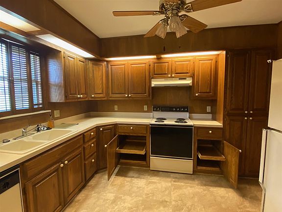 Price Reduced! 3 bed, 2 bath brick home with a 2 car garage is ready for your personal touch. The kitchen is very functional with pull out drawers in many of the base cabinets as well as a pantry cabinet. Large lot has mature trees and two storage sheds. The larger 12 x 24 shed has electric and was used as a workshop. Lots of storage throughout the home. Appliances including the washer & dryer stay but are not warranted. Some personal items will convey with the property and home is selling "as is".