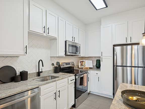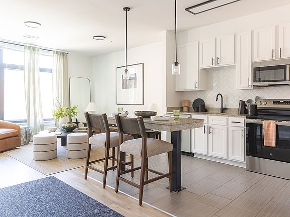 - Exterior features: 9 Ceilings Throughout, With 12 Exposed Concrete Ceilings on Level One, Barbecue, Business Center, EV Charging Stations, Exterior Type: Conventional, Grills, Large Windows and Open, Airy Floor Plans in Every Apartment, Modern Finishes Throughout, Including Designer Brushed Nickel Fixtures and Contemporary Industrial Pendant Lighting, Open, Spacious, Roommate-Style Floor Plans with Two Master Bedrooms, Pet Park, Property Lined by Birch Trees to Maximize Privacy, Reverse Two-Tone Trim, TV Lounge, Theater