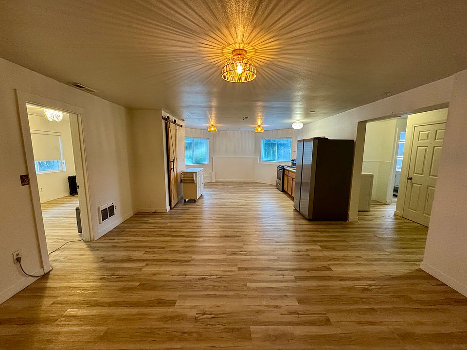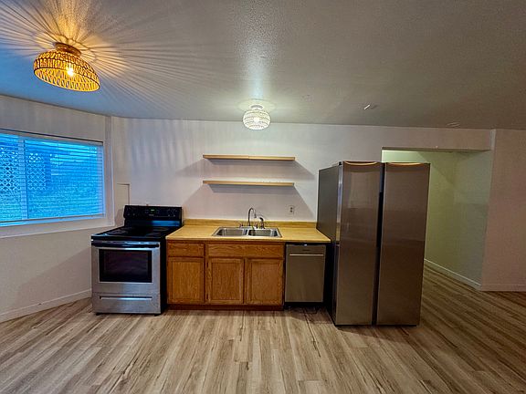 Spacious 1-bedroom, 1-bath daylight basement apartment with private entrance, located in a quiet neighborhood near Samaritan Pacific Communities Hospital. The unit offers over 800 sq. ft. of living space with an open kitchen and living area, four windows that bring in natural light, and durable LVP flooring throughout.
