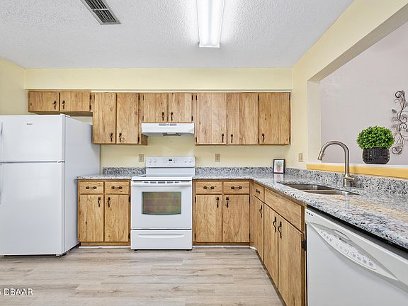 Move-In Ready Charmer in Dunlawton Hills! Welcome to this delightful 2-bedroom, 2-bath townhome in the desirable Dunlawton Hills Subdivision. This light and bright home features large windows that fill the space with cheerful natural light. Sliders from the living room open to a private patio with peaceful wooded views. Recent updates include a new roof in 2024 and a brand-new front door, adding both value and curb appeal. The primary bedroom offers engineered wood flooring, a walk-in closet, and an en suite bath with a step-in shower. The split floor plan provides added privacy with a second bedroom with a new hurricane window and full bath. Enjoy cooking in the roomy kitchen featuring ample cabinet space, a pantry, and brand-new granite countertops. Laundry is conveniently located in the attached 1-car garage. Just three doors down, you'll find the community pool—ideal for cooling off on warm Florida days.All this, just minutes to the beach and the best of Port Orange—shops, dining, and more!