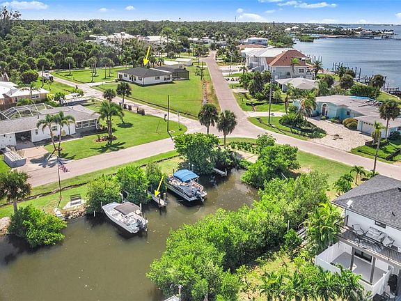 One or more photo(s) has been virtually staged. Be sure to watch the video. It is a drone tour of the external property and it's relationship to Lemon Bay. Then, experience the best of Florida living in this stunning, fully renovated home. This house has been meticulously updated from top to bottom, ensuring a lifestyle of comfort and convenience. Just across the street from spectacular Lemon Bay, this property has two private, owned boat slips at the deeded wooden dock. The new roof includes solar panels, allowing for extremely low monthly electric bills. Step inside and discover a completely transformed interior with new flooring, a brand-new kitchen, and two updated bathrooms, all featuring modern fixtures and finishes. A new hurricane slider door opens to your private backyard oasis, where a recently lined gunite inground pool, with a depth of 8', new pool mechanics and a relaxing Jacuzzi await. The addition of an outdoor shower makes rinsing off after a swim a breeze. Rest easy knowing the big-ticket items have all been handled. The home boasts a new roof, new AC, new hot water heater, new garage door, new guttering, and new electric panels, providing peace of mind for years to come. With all new appliances included, this home is truly move-in ready.
