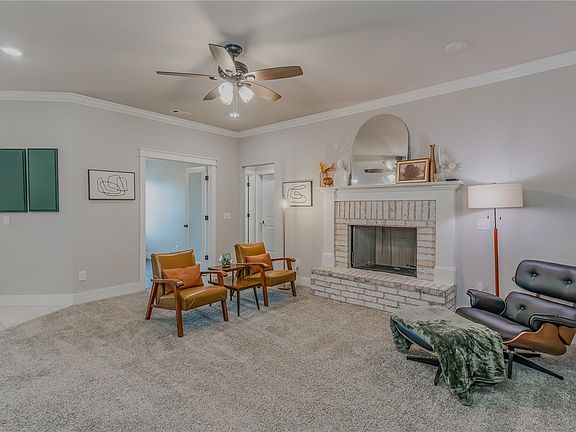 Wood privacy fenceDouble vanitiesWalk-in closetEn suite bathroomCovered patioGorgeous kitchenCozy brick fireplace