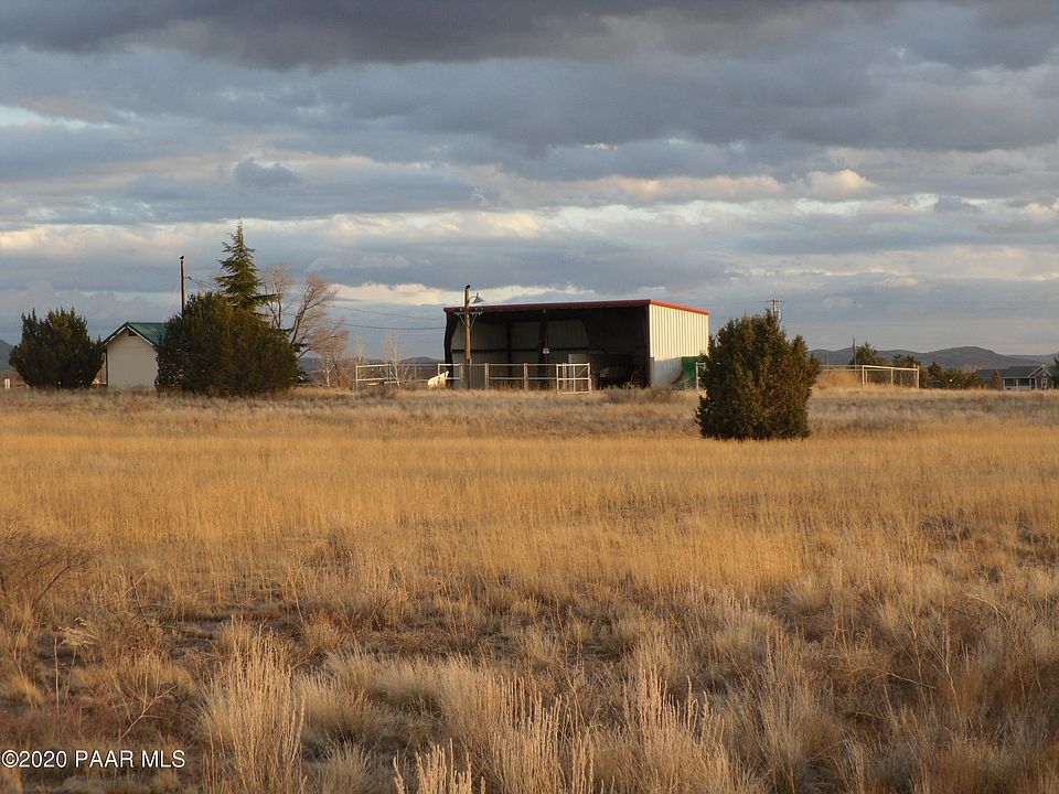 Gorgeous views and wide open spaces on this 5 acre horse property with large metal storage barn, insulated workshop/storage bldg, 50' pipe round pen, concrete material storage bins, pipe garden area and ALL supplied with electricity, lighting AND a good well. Plus, it is just a few hundred feet to State Land. Bring the horses and toys as you can ride right from the property! Fully fenced with partial pipe and partial wire. Perfect for a land/home package or build your own custom home. See more info under docs. Well registry there too.