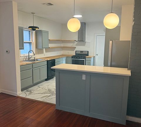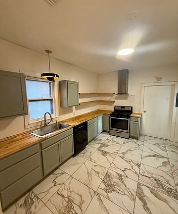 Stainless steel appliancesOpen style kitchenButcher block countertops