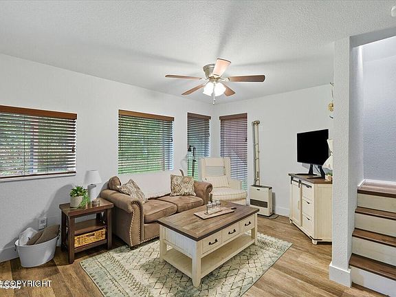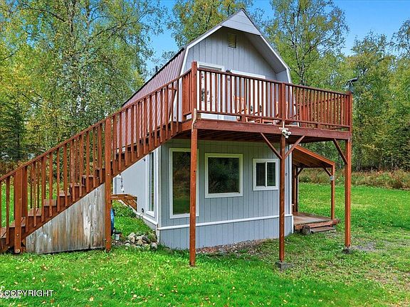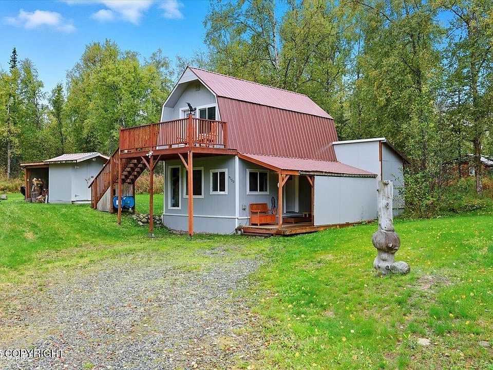 Just minutes from Palmer, this property offers flexibility as a comfortable residence or as a profitable, established short-term rental. Situated on a private 1.2-acre lot directly on Buffalo Mine Road. The home can be purchased as a primary residence or as a turn-key opportunity, with furnishings negotiable.Inside, you'll find thoughtfully updated spaces designed for both function and style. The kitchen features quality cabinetry, concrete countertops, stainless appliances, and oversized windows that flood the room with natural light. The spa-like bath includes a Jacuzzi tub with tiled surround, creating a relaxing retreat. A south-facing sundeck extends the living space upstairs to the outdoors perfect for Alaska's long summer days and viewing the northern lights. Exterior highlights include a sauna, landscaped yard, BBQ and fire-pit area, storage shed, and ample parking. Recent Updates & Features: - New metal roof (2020) - Remodel completed (2022) - Septic system serviced (Feb 2022) - New dishwasher (2024) - Installed generator (2025) - Outdoor BBQ and fire pit (2025) Short-Term Rental Info: This is an active Airbnb with strong booking history. Buyer may assume future reservations after closing, subject to loan requirements. All bookings within 30 days of an accepted offer will be honored. Please do not disturb guests; showings by appointment only.