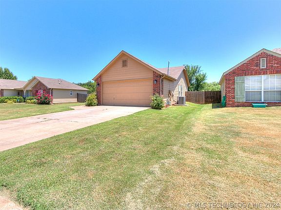 This home features a split floor plan with 3 bed, 2 bath with open kitchen concept, vaulted ceilings, new carpet and interior paint, concrete floors throughout, laundry inside as well as 2 car garage. Home has a full privacy fence backing up to small water way and trees. In close proximity to Creek turnpike for convenience of travel. This puppy won't last long!