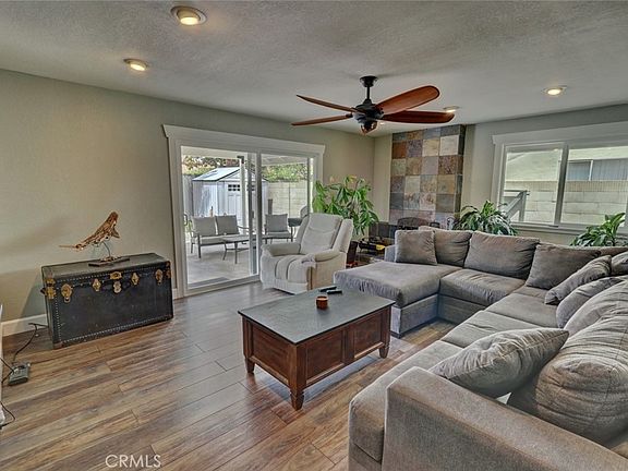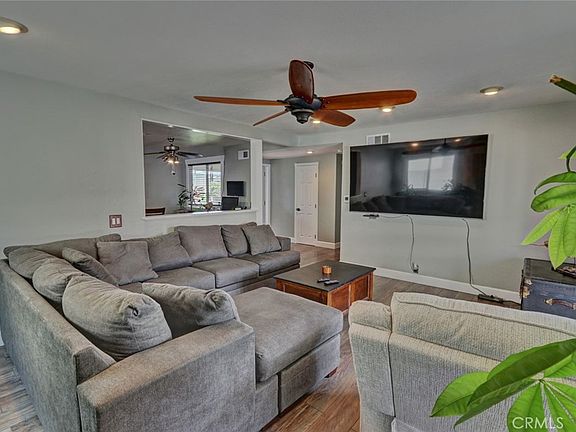 Welcome to this beautiful Glen Mar Shores home! A three bedroom two bath pool home located in a desirable interior tract location. This home has been meticulously maintained, showcasing true pride of ownership. As you approach the home, you'll be greeted by a lush tropical landscape featuring swaying palm trees and vibrant plumerias, all framed by a charming brick-lined walkway. The kitchen boasts waterproof vinyl flooring, sleek stainless steel appliances, and modern recessed lighting! The living room features wood flooring, newer ceiling fans, recessed lighting, and a fireplace with a new slate facade. Both bathrooms feature updated vanities. All bedrooms have newer carpet and ceiling fans! The backyard offers a custom-built patio cover and a recently refinished pool that is perfect for summertime fun with family and friends. The owner has created extra attic space in the garage that has been sheathed and joisted.