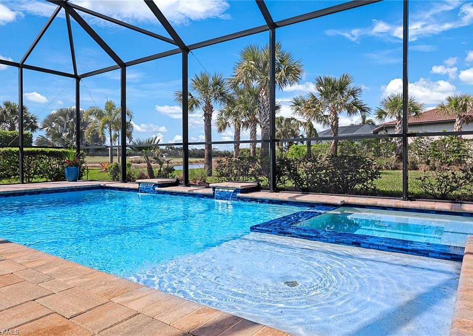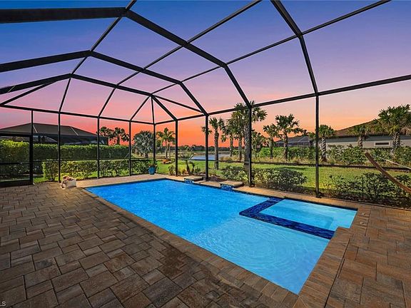 A Must See! A 3,074sf one story “Clubview” model in the exclusive and desirable community of “Greyhawk At Golf Club Of The Everglades,”- a prestigious Golf and Resort Living Community surrounded by three professional golf courses. Ask about Social and Full Golf memberships. Imagine four bedrooms, three full bathrooms (pool bath w/interior-exterior access), an office/den, a “bonus” room and an extended three-vehicle garage. Pure elegance and functionality in this well designed floorplan. The open concept design seamlessly integrates the gourmet kitchen, dining, and gathering areas—all while providing breathtaking and sunset views of the lanai, lake, and golf course holes #12, #13 and #14. The chef’s kitchen is a dream. Equipped with high-end gas appliances, premium finishes, built in appliances, pull out shelving, pantry and abundant counter space to inspire culinary excellence. Entertain effortlessly, moving from the sophisticated interior w/surround sound to the extended, oversized lanai where a heated pool and spa invite relaxation amidst serene water and golf course vistas. The lanai is plumbed and ready for an outdoor kitchen. Designed for both peace of mind and ultimate convenience, this home boasts hurricane-impact windows, Zero-Corner door sliders to the lanai, coffered and tray ceilings, crown molding and plantation shutters. The master bedroom suite features two oversized closets w/organizers, a soaking tub and walk in shower. Large laundry room and mint condition garage with Epoxy floors and organizers including a lift bar to raise golf bags and bicycles up to ceiling height. Located on an extra-large lot ensures privacy, creating a personal sanctuary within this vibrant community. Full Time Sports Director oversees the state-of-the-art sports complex featuring Pickleball, Bocce, and Tennis. Two clubhouses offering fine and casual dining at both beautifully appointed restaurants. Unwind in the resort- style heated pool, lap pool, and spa, or gather with friends at the lively outdoor Tiki Bar. The cutting-edge fitness center and movement studio provide endless opportunities to stay active including Yoga, Pilates, Zumba and water aerobics—all within a secure, gated enclave that feels like paradise. Full Time Social Activity Director manages the fun filled social activity calendar. Tucked away in one of Naples’ most sought-after communities, this hidden gem offers the perfect balance of tranquility and accessibility. World-class shopping, dining, and entertainment are just minutes away, ensuring that every convenience is at your fingertips. Head West on Vanderbilt Beach Road and find white sandy beaches filled with seashells. No CDD in this community and low golf and HOA fees make this community of only 560+ homes, a real winner! Schedule your private showing today and experience the pinnacle of elegant Florida living. Your DREAM home awaits!